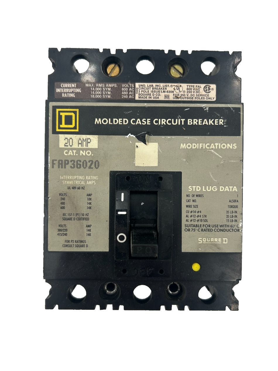 Square D FAP36020 Molded Case Circuit Breaker 20A 3Pole 600VAC