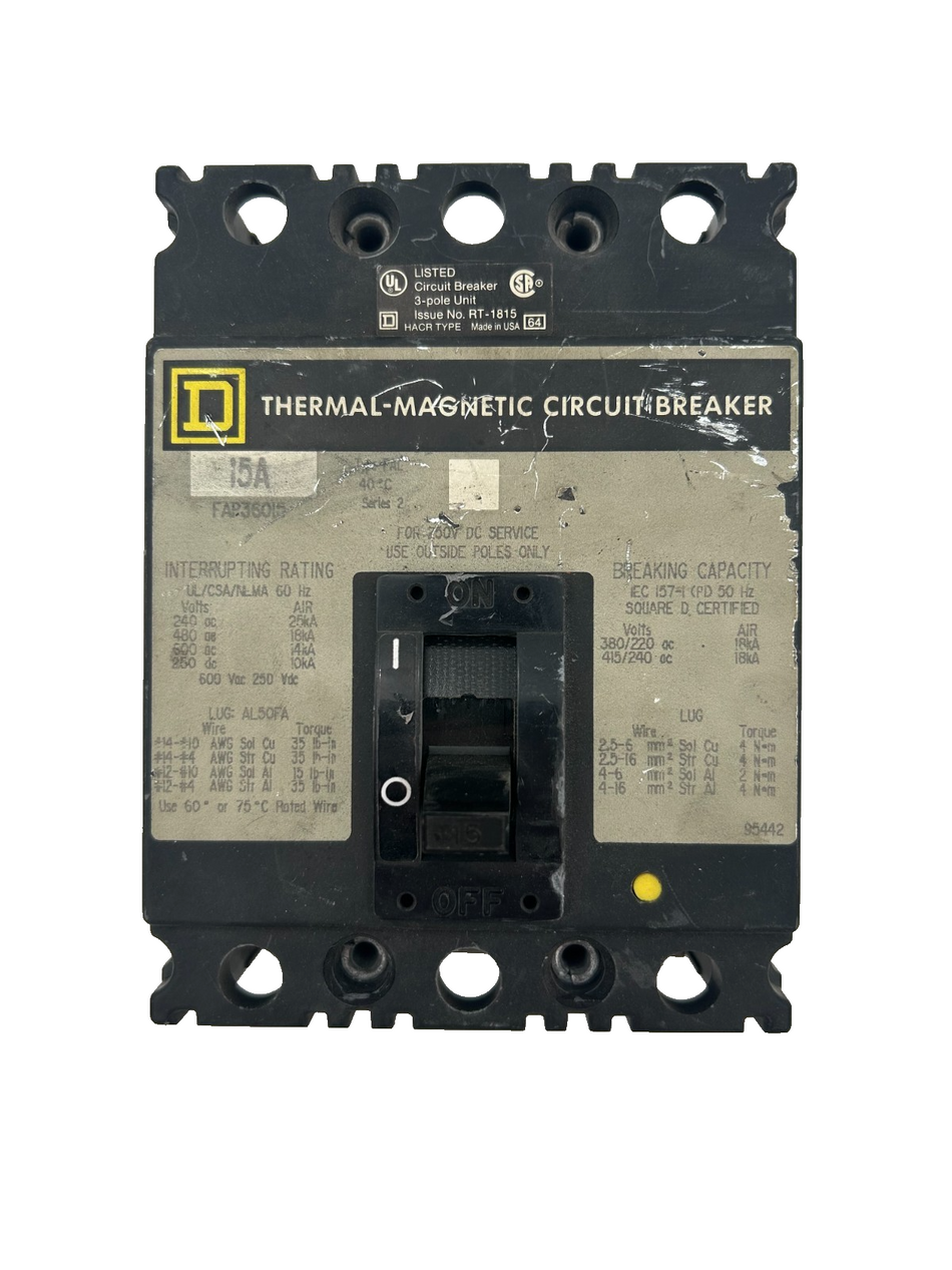 Square D FAP36015 ThermalMagnetic Circuit Breaker 15A 3Pole 600V