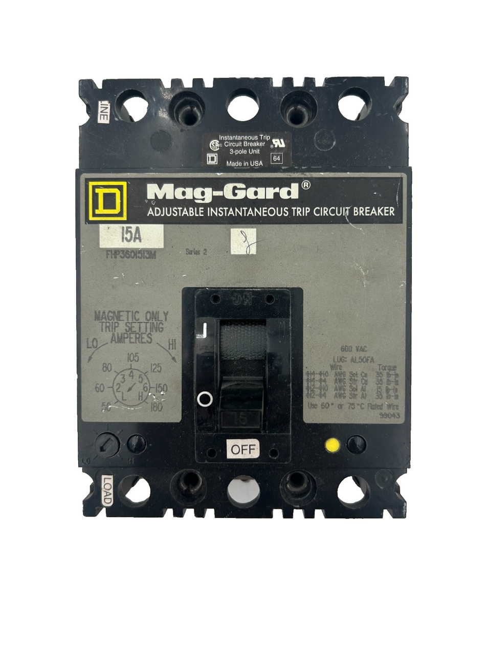 Square D FHP3601513M MagGard Circuit Breaker 15A 3Pole 600VAC