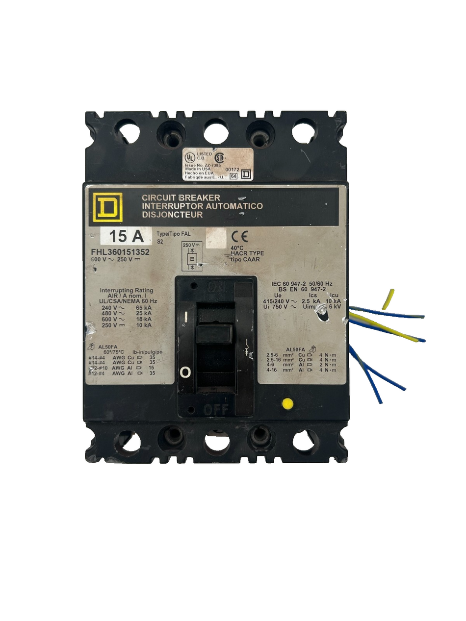 Square D FHL360151352 Circuit Breaker 15A 3Pole 600V